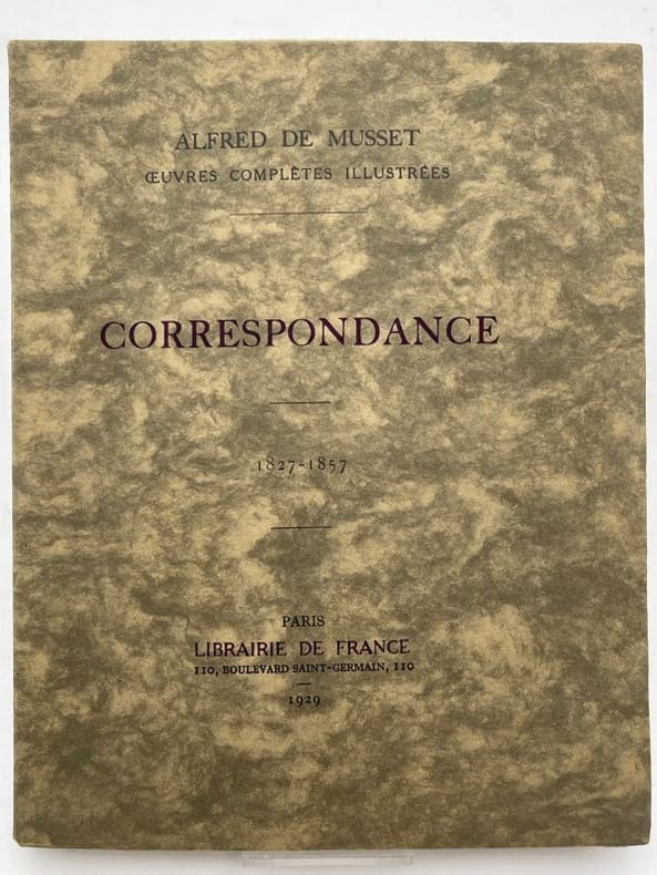 10 vol. in-8 br. couv. rempliées, ill. noir et blanc, Librairie de France, Paris, 1928 - 1929, 407 pp., 484 pp., 312 pp., 228 pp., 327 pp., 346 pp., 446 pp., 497 pp., 470 pp. et 265 pp. Oeuvres complètes illustrées : Premières poésies ( 1828 - 1833 ) ; Poésies nouvelles ( 1833 - 1852 ) ; Contes et Nouvelles I ; Contes et Nouvelles II ; Mélanges de litérature et de critique ; La confession d’un enfant du siècle - L’Anglais mangeur d’opium ; Comédies et proverbes I ; Comédies et proverbes II ; Comédies et proverbes III ; Correspondance ( 1827 - 1857 )