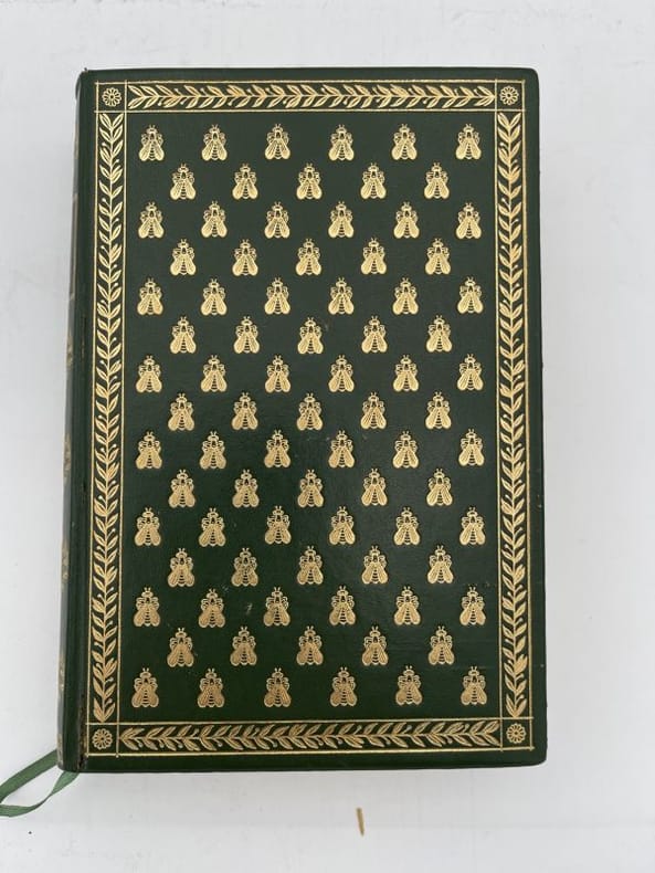 Paris Jean de Bonnot 1968 in 8 (21x14) 1 volume reliure plein cuir vert, ornée de l'éditeur, dos lisse orné, plats ornés d'un semis d'abeilles dorées, tête dorée, XIV et 428 pages. Bel exemplaire ( Photographies sur demande / We can send pictures of this book on simple request )
