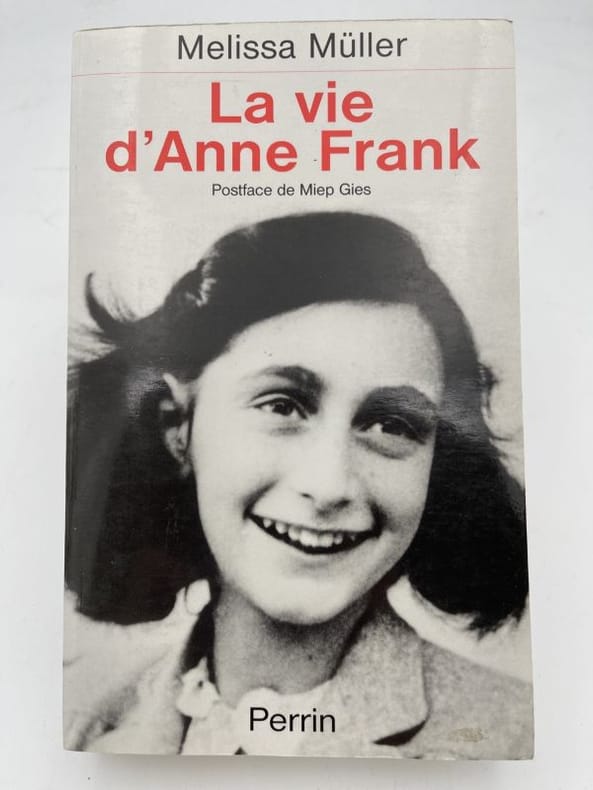 Fondation Anne Frank/Casterman, Amsterdam, 1992. In-4, cartonnage éditeur illustré en noir et blanc, 63 pp. Son plus beau cadeau d'anniversaire - De Francfort à Amsterdam - "Chère Kitty" - L'ultime témoin - Lexique. - Informations. - Chronologie. - Bibliographie. - Index. - Cartes.