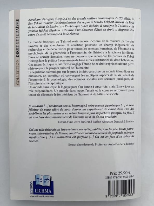 Editions Lichma Editions Lichma, 2016. Collection Droit et Judaïsme. Grand et fort In-8 broché, 530 pages. Avec la collaboration de Jonathan Weizman. Très bon état
