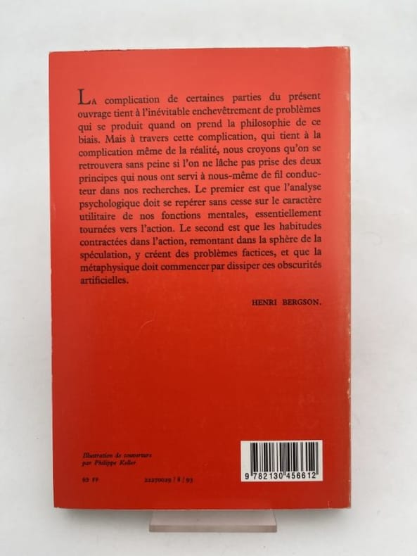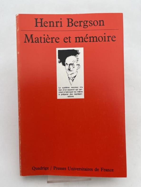 contient :- De la sélection des images pour la représentation. Le rôle du corps. - De la reconnaissance des images . La mémoire et le cerveau. - De la survivance des images . La mémoire et l'esprit. - De la délimitation et de la fixation des images . Perception et matière . Âme et corps. Coin supérieur de la page d'avant-titre coupé. Légère trace de mouillure au coin supérieur de p.de titre et rares et pâles rousseurs sur 1 p. Hormis ces défauts marginaux,la reliure et l' intérieur sont en bon état. Cet ouvrage livre une analyse de la perception et de la mémoire, et propose des considérations sur les problèmes de la relation entre l'esprit et le corps.