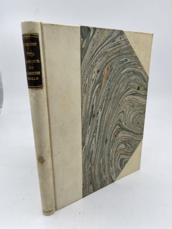 Paris E. Dentu 1875 1 vol. relié in-12 carré, bradel demi-chagrin bordeaux avec plats de tissu bordeaux décoré de frises florales à l'horizontale, couvertures conservées, 171 pp. Première édition séparée, tirée à petit nombre, du chapitre IV de La Femme au XVIIIe siècle paru en 1862. Joli frontispice à l'eau-forte par Boilvin et texte dans un encadrement gravé sur bois par Meaulle. Ex-libris manuscrit Barbier Sainte Marie. Charmante reliure postérieure. Rousseurs.