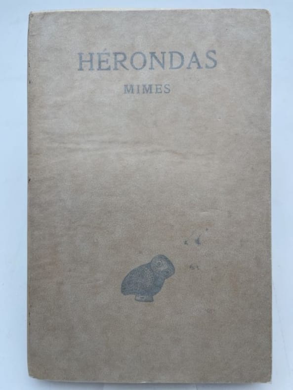 Édition originale de la traduction. Exemplaire avec envoi. Cet ouvrage est le troisième publié par les toutes jeunes éditions Denoël et Steele, créées la même année. C'est aussi le premier livre illustré de l'éditeur. Cette traduction de Jacques Dyssord se veut une redécouverte de l'esprit originel de l'œuvre et de sa fraîcheur à travers l'emploi d'expressions contemporaines : J'ai donc formé le projet de retremper les Mimes d'Hérondas dans leur véritable atmosphère. Pour cela, j'ai cherché, soit dans notre argot, soit notre langue populaire, si riche et si savoureuse, l'équivalent des expressions et des termes employés par les personnages d'Hérondas sans redouter un seul instant, de tomber dans un nécessaire anachronisme. Le texte est précédé d'un avertissement du traducteur et est suivi d'une bibliographie sur Hérondas. Cette édition est illustrée de 19 compositions de Carlo Rim gouachées au pochoir par l'atelier Nervet : 8 en-têtes, 8 culs-de-lampes, 1 frontispice, 1 vignette de titre et un large encadrement à la justification. L'ouvrage a été imprimé à 870 exemplaires numérotés. Celui-ci est non numéroté sur papier vélin de Rivres, même papier que les 800 suivants 50 Hollande et 20 Japon. On peut lire au premier feuillet blanc l'envoi : au docteur Henri Flurin, en souvenir de la Fontaine Médicis, du d'Harcourt & de la Pension Laveur qui n'ont pas réussi à nous guérir de nos chères Pyrénées. Son compatriote et ami. Dévotement, Jacques Dyssord. Paris 2/2/37. Édouard Moreau de Bellaing, dit Jacques Dyssord (Oloron Sainte-Marie 1880-Villejuif 1952) quitte son Béarn natal après une licence de droit pour tenter une carrière littéraire à Paris. Son premier recueil (Le dernier chant de l'intermezzo, 1909) lui fait rencontrer Guillaume Apollinaire, Tristan Derème, Jules Supervielle, Francis Carco, André Salmon, Laurent Tailhade, Paul-Jean Toulet… Travailleur infatigable, il sera tour à tour poète, romancier, journaliste, essayiste, auteur de pièces de théâtre… Carlo Rim (Nîmes 1905-Peypin 1989), de son vrai nom Jean Marius Richard, fut journaliste, scénariste, réalisateur et dessinateur de presse. Cette illustration témoigne de son activité d'illustrateur avant qu'il ne s'investisse davantage dans le cinéma. En 1931, Carlo Rim est rédacteur en chef de Vu et de L'Instransigeant en 1933 et commence à écrire ses premiers scénarios. Il écrivit une trentaine de films et réalisa une dizaine de comédies à la verve satirique ayant pour acteurs Fernandel, Darry Cowl, Robert Lamoureux. À partir de 1960, il travaillera essentiellement pour la télévision. Très bel exemplaire. Monod, Manuel de l’amateur de livres illustrés modernes 1875-1975, I, n°5993 ; Talvart & Place, Bibliographie des auteurs modernes…, V, p. 159.