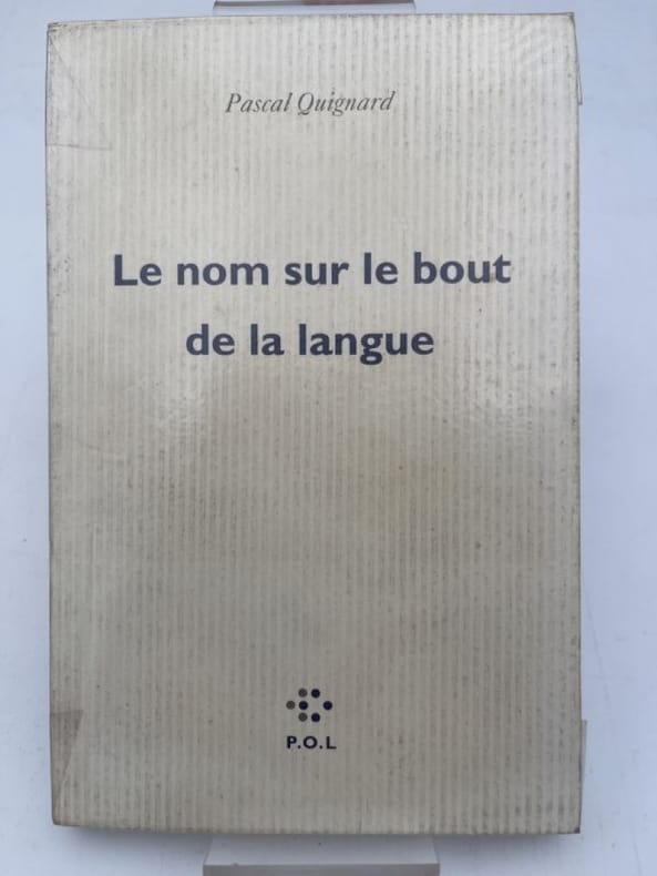 Paris P.O.L. 1993 In-8, broché, couverture imprimée.Edition originale de cette profonde réflexion sur la pensée, le langage et l'écriture, exposée à travers un conte narrant l'histoire d'une jeune femme qui promet à un homme de retenir son nom, nom qu'elle oublie avec désespoir. Il n'a pas été imprimé d'exemplaires sur grand papier pour cette édition.