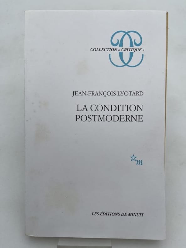 Lovely presentation-copy of a later issue of the groundbreaking work that introduced the term ""post-modernism"" and fundamentally altered the interpretation and course of (post-)modern philosophy. With this book, Lyotard set the agenda for the discussion of the postmodern, which began in the 1980'ies. Lyotard's main point is that modern society has become postmodern because man no longer believes that scientific and technological progress will lead to freedom, prosperity, and enlightenment for all. For postmodern man, doubt is the dominating factor. The term ""postmodernism"" was previously only used by art critics, but with ""The Postmodern Condition"", Lyotard introduced it in philosophy, with the following quotation: ""Simplifying to the extreme, I define postmodern as incredulity towards metanarratives"", altering our comprehension of this most recent period of philosophy. ""The term ""postmodern"" came into the philosophical lexicon with the publication of Jean-François Lyotard's ""La Condition Postmoderne"" in 1979 (English: ""The Postmodern Condition: A Report on Knowledge"", 1984), where he employs Wittgenstein's model of language games (see Wittgenstein 1953) and concepts taken from speech act theory to account for what he calls a transformation of the game rules for science, art, and literature since the end of the nineteenth century. He describes his text as a combination of two very different language games, that of the philosopher and that of the expert. Where the expert knows what he knows and what he doesn't know, the philosopher knows neither, but poses questions. In light of this ambiguity, Lyotard states that his portrayal of the state of knowledge ""makes no claims to being original or even true,"" and that his hypotheses ""should not be accorded predictive value in relation to reality, but strategic value in relation to the questions raised"" (Lyotard 1984, 7). The book, then, is as much an experiment in the combination of language games as it is an objective ""report.""On Lyotard's account, the computer age has transformed knowledge into information, that is, coded messages within a system of transmission and communication. Analysis of this knowledge calls for a pragmatics of communication insofar as the phrasing of messages, their transmission and reception, must follow rules in order to be accepted by those who judge them. However, as Lyotard points out, the position of judge or legislator is also a position within a language game, and this raises the question of legitimation. As he insists, ""there is a strict interlinkage between the kind of language called science and the kind called ethics and politics"" (Lyotard 1984, 8), and this interlinkage constitutes the cultural perspective of the West. Science is therefore tightly interwoven with government and administration, especially in the information age, where enormous amounts of capital and large installations are needed for research."" (SEP).