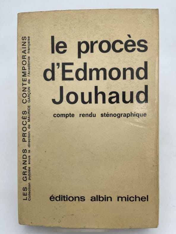 Albin Michel, 1962, in-8°, 356 pp, broché, couv. à rabats, bon état (Coll. Les grands procès contemporains), envoi a.s. d'Edmond Jouhaud
