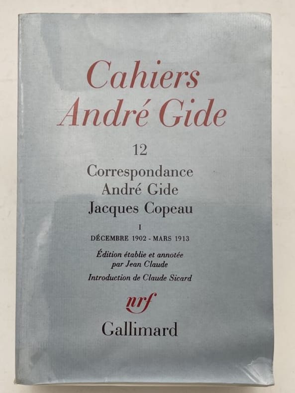Gallimard Paris, Gallimard, 1987. In-8 broché, couverture bleue de 707 pages. Cahier 12. Correspondance André Gide Jacques Copeau. 1. Décembre 1902 - Mars 1913. Bon état