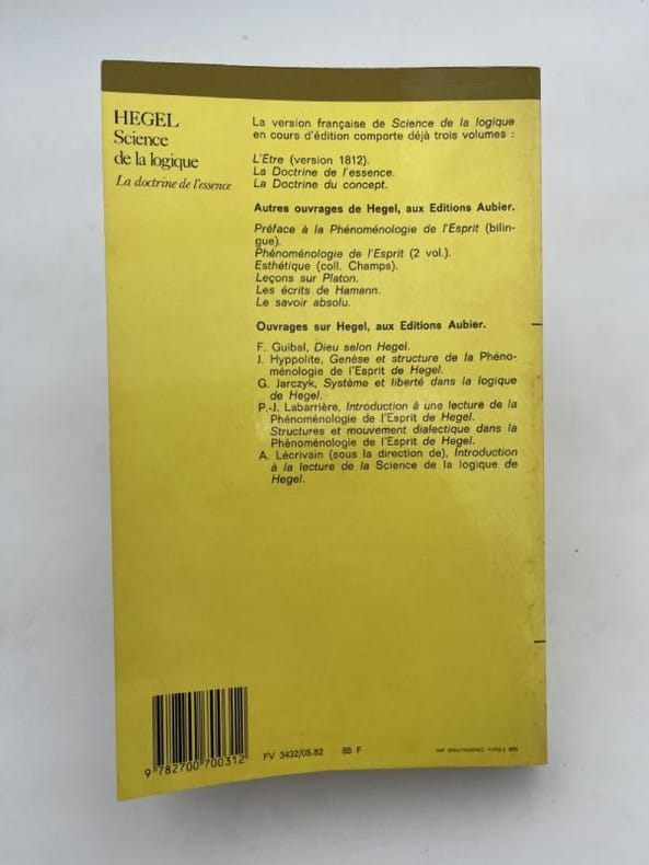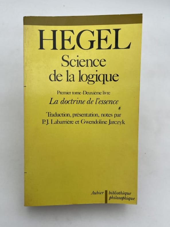 Paris Aubier Paris, Éditions Aubier Montaigne, 1982. Collection : bibliothèque philosophique. In-8 broché de 354 pages. Traduction, présentation, notes par P. J. Labarrière et G. Jarczyk. Tranche insolée, avec rousseurs, brunissement complet des pages. Marques de scotch en contreplats et feuillets de gardes. Sinon, bon état