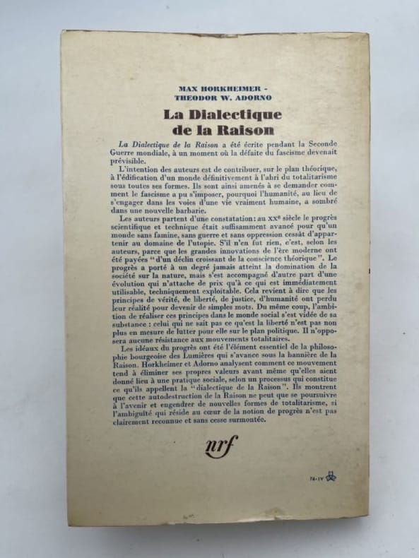 " Bibliothèque des Idées " / Gallimard (1974) - In-8 broché de 288 pages - 1° édition - Couverture rempliée - Traduit de l'allemand par Eliane Kaufholz - Préface à la nouvelle édition - Notes et esquisses - Exemplaire en excellent état
