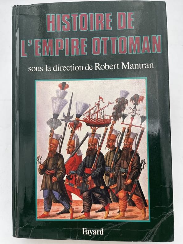 Paris, Bellizard, Barthes, Dufour et Lowell ; Londres, Bossange, Barthes et Lowell ; Saint-Petersbourg, Fd. Bellizard et Cie, 1835-1844. 18 volumes de texte in-8 et un atlas in-folio. TEXTE : 18 volumes in-8, relié demi basane et coins moderne, dos lisse orné avec pièces d’auteur, titre et tomaison noires, frottements et épidermures, défauts d’usage, rousseurs dans le texte, tampon et étiquette du relieur. ATLAS : Paris. Bellizard, Dufour etc. 1844. Imprimé chez Thierry Frères. Demi basane et coins à long grain grenat, dos à nerfs avec titre et auteur, In-folio (520x345mm), IV-82pp.-40 planches, il est composé du Commentaire sur l’Atlas de l’Empire Ottoman, d'une liste des cartes, d'une carte générale de l'Empire Ottoman (690x550mm), de 22 cartes particulières (dont une sur 2 feuilles) (815x850), de 13 plans de batailles ou de siège, et de 4 plans de villes dont un grand plan dépliant de Constantinople (690x670mm), le plan de Vienne est en 2 états, par G. Heck et Plée et gravé par U. Muschani, roussurs éparses, 2 cartes uniformément brunies avec réparations, mouillure claire en marge, tache sur les 16 premiers feuillets en tête et en fin d’ouvrage en pied. Provenance : collection de S.A.R. le Prince Osman Ibrahim d'Égypte (1951-2025), fils de S.A.R. le Prince Amr Ibrahim d'Égypte et de S.A.I. la Princesse Nejla Hibetullah Sultan (Necla Osmanoğlu) de Turquie, petite-fille du dernier calife Abdulmejid II et du sultan Mehmed VI, avec sa marque au tampon.