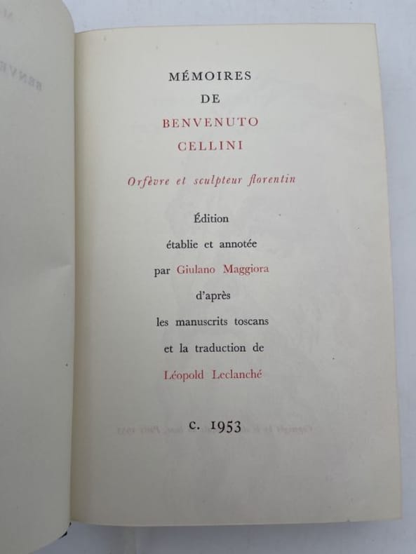 CELLINI Mémoires de Benvenuto CELLINI, Orfèvre et Sculpteur florentin 1919