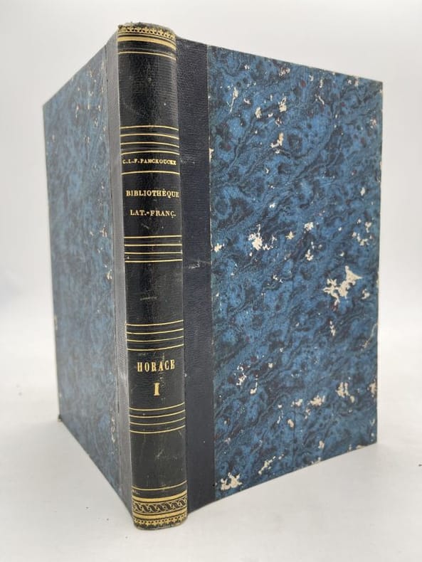 C. L. F. Panckoucke Paris, C. L. F. Panckoucke éditeur, 1837. Collection Bibliothèque Latine-Française. In-8 relié en demi-basane bleu-nuit, dos à faux-nerfs orné de filets et roulettes dorées. 1 f. blanc + faux-titre + titre + XXIII + 400 pages + 1 f. blanc. Tome premier. Contient L. I à IV des Odes, Épodes. Rousseurs éparses, parfois prononcées, néanmoins intérieur bien préservé.