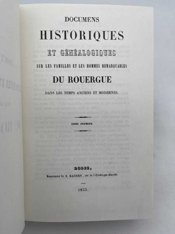 Editions du Palais Royal Paris Editions du Palais Royal 1972, 4 volumes In-8 reliure éditeur percaline grise, piéces de titre en dos. XIX + 751 + 765 + 804 + 587 pages. Reliure légèrement frottée sans gravité. Importante étude de généalogies rouergates. Rare