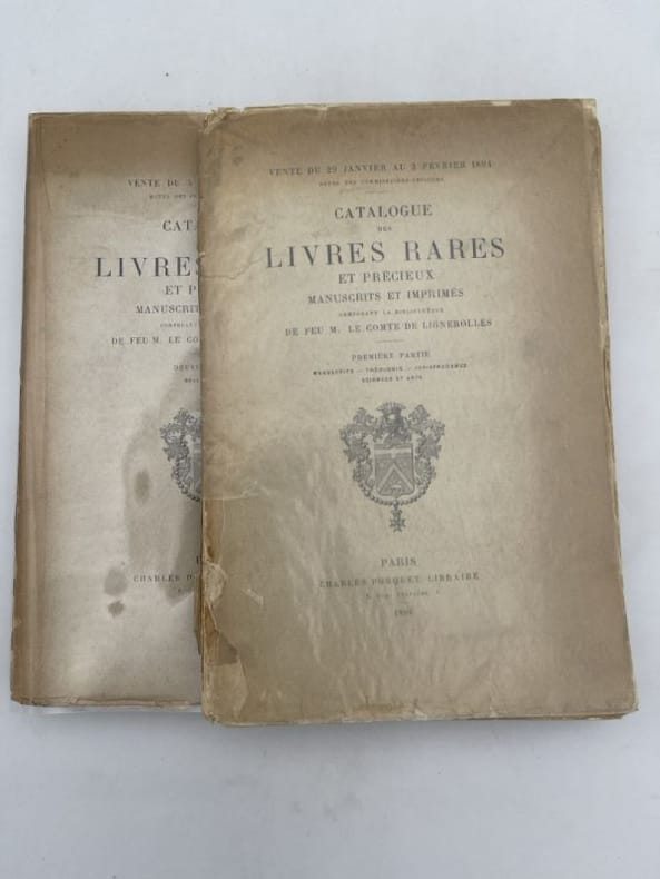Paris Charles Porquet, Libraire Paris, Éditions Charles Porquet, 1894. Deux volumes In-4 brochés de 153 et 318 pages. Première partie : Manuscrits, Théologie, Jurisprudence, Sciences et Arts. Deuxième partie : Belles-Lettres. Dos cassé avec manque et plats détachés sur les deux volumes, En l'état