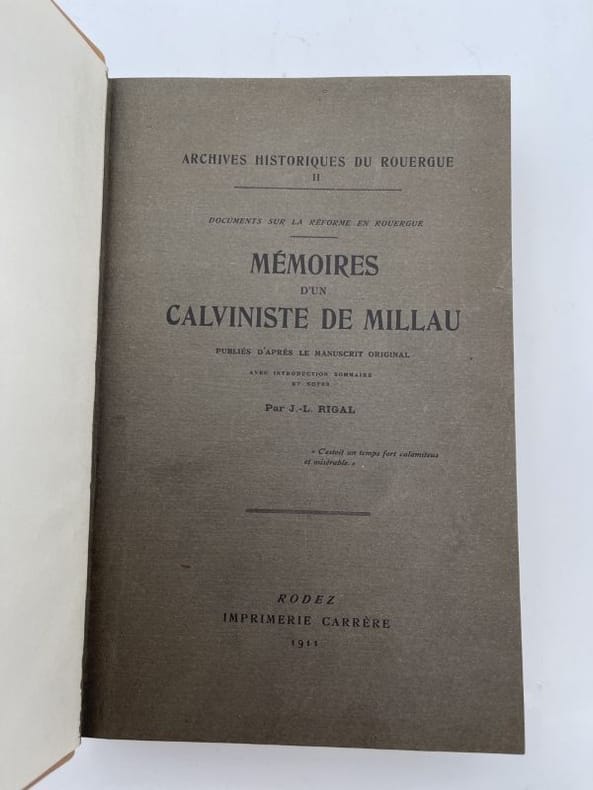 Carrère Rodez Imprimerie Carrère 1911. Grand et fort In-8 relié demi basane blonde, dos à nerfs, fleurons dorés, pièce de titre et d'auteur de cuir marron, couverture conservée. xxxii + 512 pages. Tiré à 300 exemplaires. 2° publication des Atchives Historiques du Rouergue. Très bel état. Rare, d'autant plus dans cette condition.