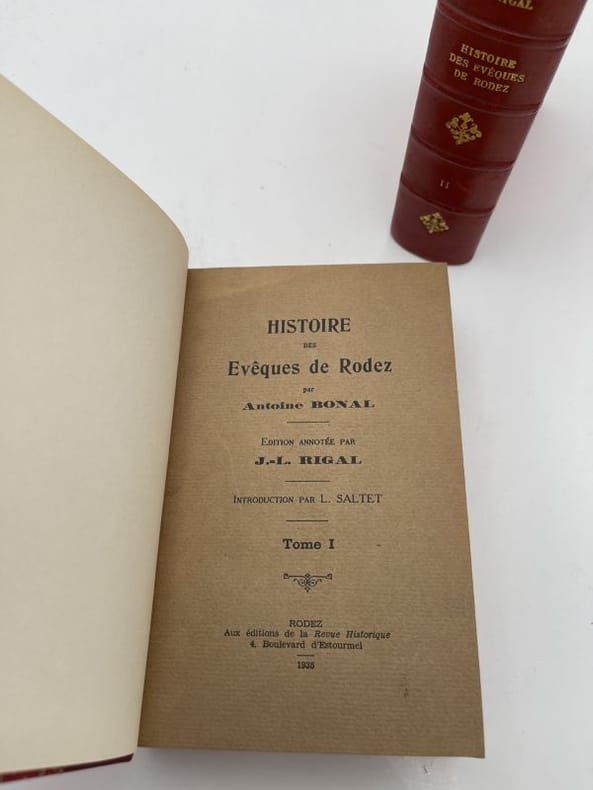 Editions de la revue historique Rodez, Aux Editions de la Revue Historique, 1935 - 1938. 2 volumes forts In-12 reliés demi-chagrin rouge, dos à nerfs, fleurons et titre dorés, gardes de papier marbré, couvertures conservées. XXIV + 615 + XXXV + 692 pages. Bel exemplaire, bien relié. Peu courant.