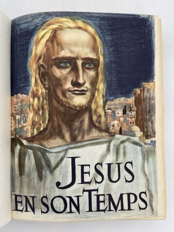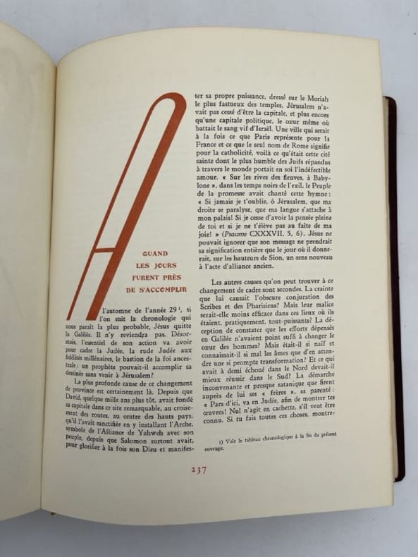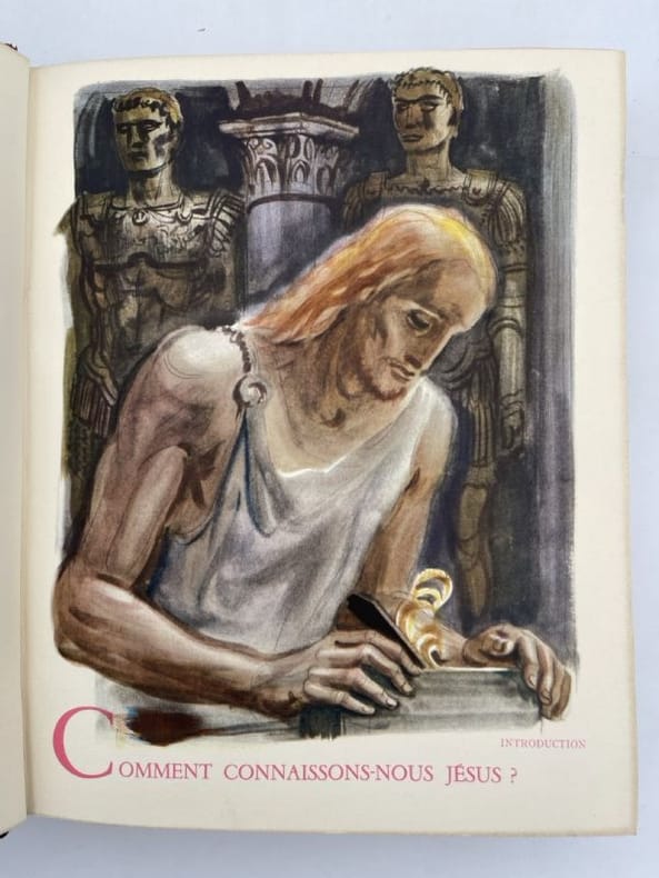 Paris, Lib. Arthème Fayard, 1946, 638 pp., in-8, rel. cart. édit. pl. perc. vert. ill. 2 cart. h. t. dépl. 1er plat ill. chrisme ins. ds une courone d'épine doré. Palestine au temps de Jésus & Jérusalem au temps de Jésus.
