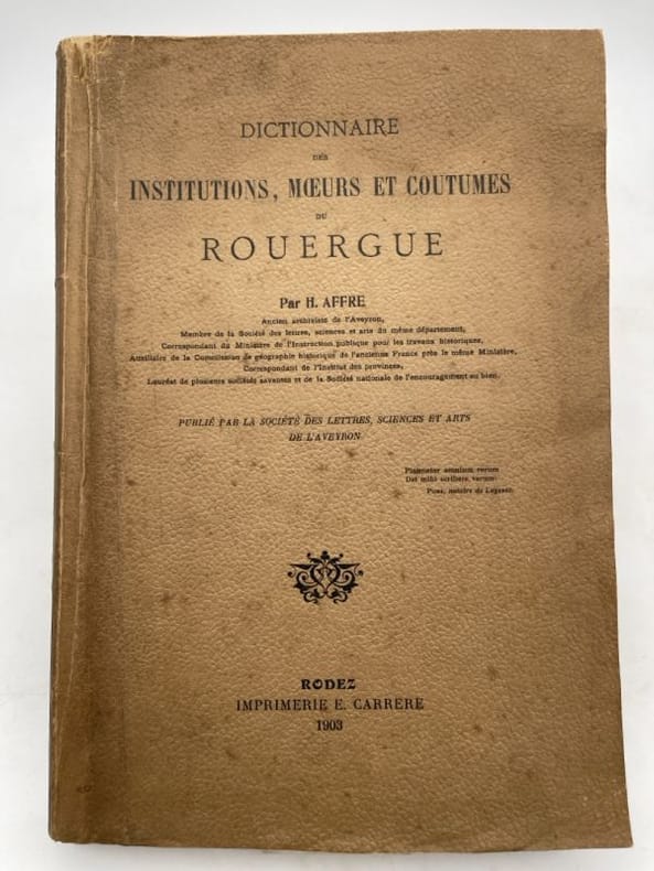 Carrère Rodez, Imprimerie Carrère, 1903. In-4 broché de 468 pages non coupées. Rousseurs sur la couverture et bord de la première page bruni. Corps de l'ouvrage en très bon état. Bon exemplaire pour cette édition originale rare.