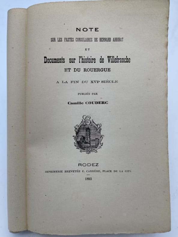 Carrère Rodez, Carrère, 1893. In-8 broché, 183 pages non coupées. Couverture défraichie avec petits manques de papier, corps de l'ouvrage en très bon état. Peu courant