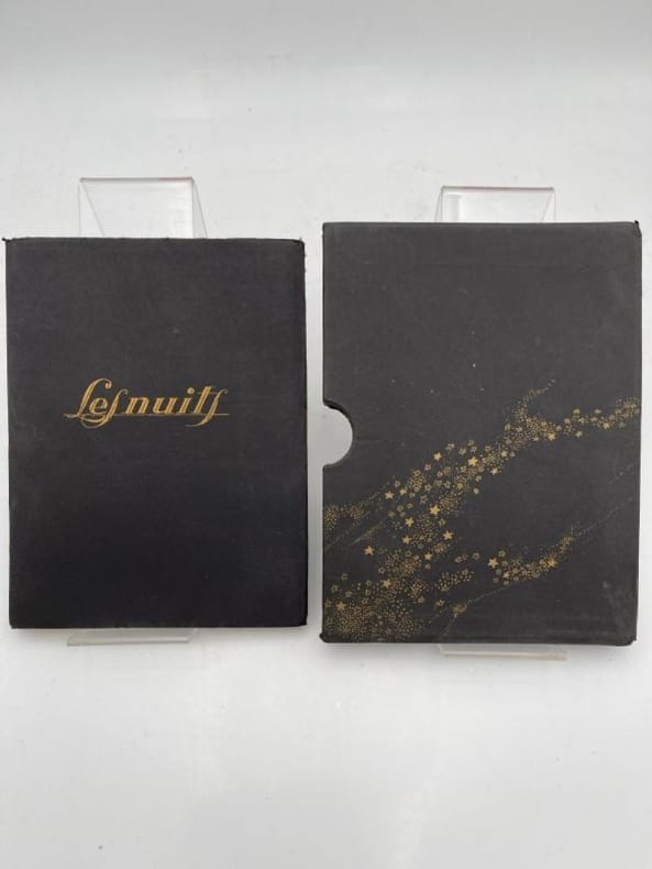 Somptueuse édition des Milles et une nuits dans la traduction du docteur Mardrus, comportant de grandes compositions en couleurs et or, hors textes, de Léon Carré ainsi que des ornements et décorations de Racim Mohammed. Un des 50 exemplaires sur Japon impérial, contenant pour chaque volume, une suite en couleurs, une suite en noir et une aquarelle originale signée de Léon Carré. Cet exemplaire est enrichi du prospectus annonçant l'édition qui présente un cahier imprimé et une gravure en couleurs. Dans ce prospectus, l'éditeur révèle qu'il a entamé cette publication à la demande de plusieurs amateurs de livres d'art et que pour "donner à cet ouvrage une forme extérieure digne de lui, [il a fait] appel aux deux artistes orientalistes les plus qualifiés". Le premier, Léon Carré est un peintre et illustrateur français qui a contribué notamment à la décoration du paquebot Île-de-France et la dessiné le billet de cinquante francs émis par la banque d'Algérie en 1942. Le second, Racim Mohammed, calligraphe et peintre algérien, ancien collaborateur de Dinet, a fourni tous les ornements du texte (encadrement, miniatures, lettrines...). Leurs oeuvres ont été reproduites par un procédé nouveau d'impression en couleurs, inventé par Louis Grenier puis tirées par Kadar. Il a fallu au total près de 8 ans de travail pour accomplir cette monumentale édition. Superbe exemplaire de ce livre orientaliste. Voir photographie(s) / See picture(s) * Membre du SLAM et de la LILA / ILAB Member. La librairie est ouverte du lundi au vendredi de 14h à 19h. Merci de nous prévenir avant de passer,certains de nos livres étant entreposés dans une réserve.