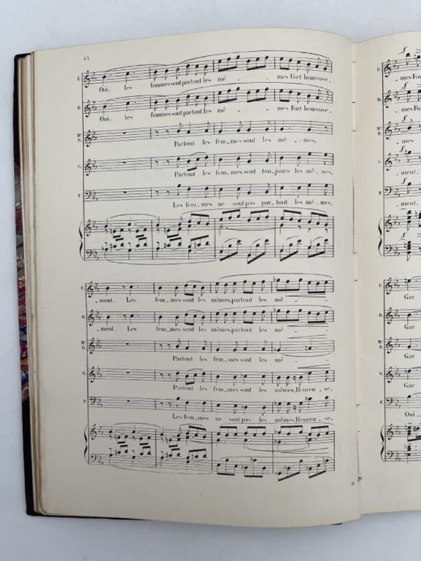 Au Ménestrel Paris, Éditions Au Ménestrel - Heugel et Cie, 1883. In-4 relié, demi-basane mauve à coins, de 275 pages. Dos à nerfs, titre et tranche supérieure dorés. Partitions pleines pages. Bon état