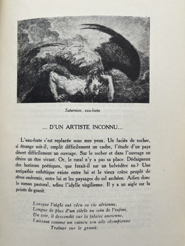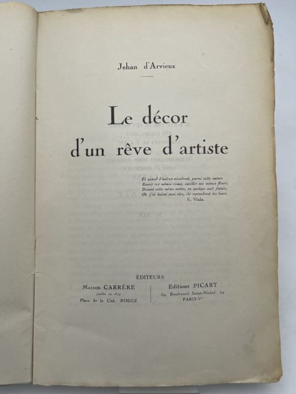 Rare exemplaire de l'édition originale (tirée à 450 exemplaires) de l'ouvrage consacré par Jehan d'Arvieux au peintre, graveur et poète aveyronnais Eugène Viala (1859-1913). Fameux pour ses paysages hallucinés dans l'esprit du romantisme noir et du symbolisme, Eugène Viala représente souvent l'austérité et le caractère sauvage de sa terre natale. Bon état (couv. lég. frottée avec très petit mq. en coiffes, bon exemplaire par ailleurs).