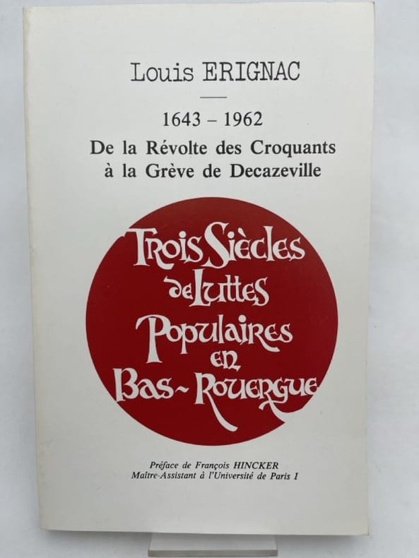 Villefranche-de-Rouergue Edité par la Fédération de l'Aveyron et la Section de Villefranche-de-Rouergue du Parti Communiste Français 1977 in 8 (21x13,5) 1 volume broché, couverture imprimée en rouge et noir, 286 pages [1], avec des illustrations en noir et blanc. Edité par la Fédération de l'Aveyron et la Section de Villefranche-de-Rouergue du Parti Communiste Français. Louis Erignac, 1910-1998, homme poltique français, chef de file communiste. Envoi autographe signé par l'auteur. Bel exemplaire ( Photographies sur demande / We can send pictures of this book on simple request )