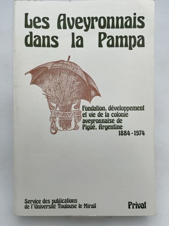 Privat Toulouse, Privat, service des publications de l'Université Toulouse le Mirail 1977. In-8 broché de 325 pages. Fondation, développement et vie de la colonie Aveyronnaise de Pigüe, Argentine, 1884 - 1974. Nombreux tableaux. Très bon état