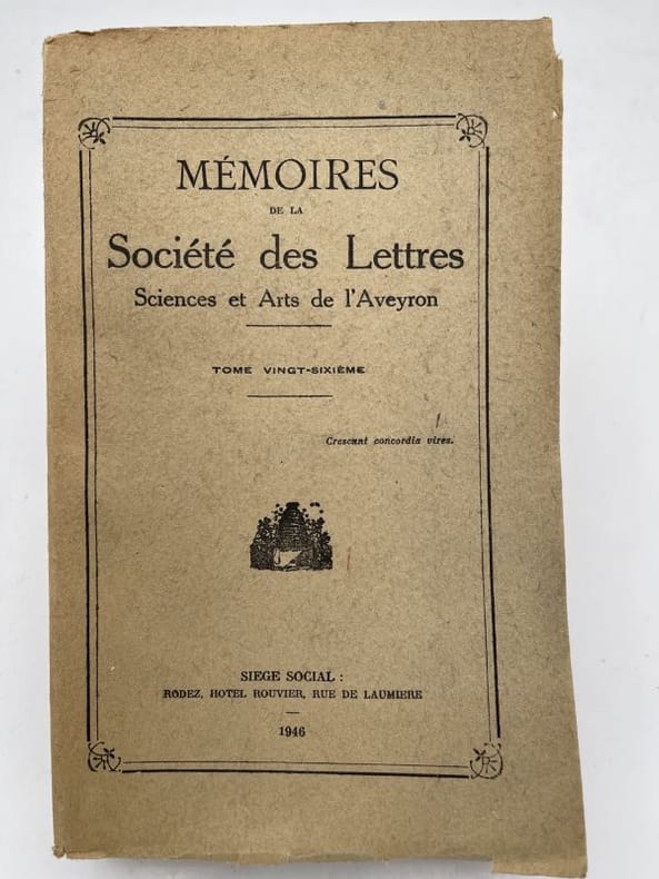 Rodez Rodez, 1946. In-8 broché, 315 pages non coupées. Tome 26. Complet de la carte dépliante. L. BALSAN : Spéléologie du département de l'Aveyron. Essai d'inventaire géographique, descriptif et bibliographique- P. Lacombe "Cimetière barbare de Navas. Etude anthropologique" - Bousquet H "Les murs de La Couvertoirade et de sainte Eulalie du Larzac" - Combes de Patris B "Inventaire de l'argenterie des Eglises du Rouergue en 1690". Bon état