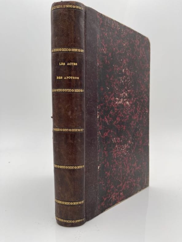 1900 Paris, Maison de la Bonne Presse, vers 1900. Un volume de format grand in 8° de 94 pp. (Saint Matthieu); 46 pp. (Saint Marc); 78 pp. (Saint Luc); 62 pp. (Saint Jean); 70 pp. (Les Actes des Apôtres). Illustrations en noir reproduisantdes gravures de 1595. Reliure de l'éditeur en pleine percaline rouge, titres dorés.