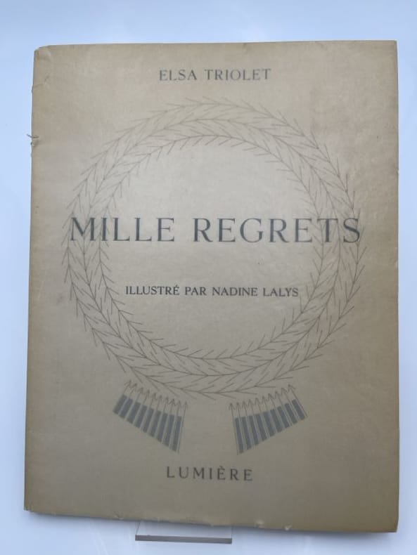 Tirée à 672 exemplaires numérotés, celui-ci sur vélin d’Arches. Les 55 illustrations dont 18 hors-texte ont été reproduites par Georges Duval et coloriées à la main par Beaufumé. Au sommaire: Mille Regrets, Henri Catellat, Le destin personnel, La Belle Epicière. L’original dans un passepartout avec au dos manuscr. par Elsa Triolet „Illustr. de Tristan Bérard“ Initiales de Triolet „Tr.“ (Tristan est tracé et corrigé par Christian !).