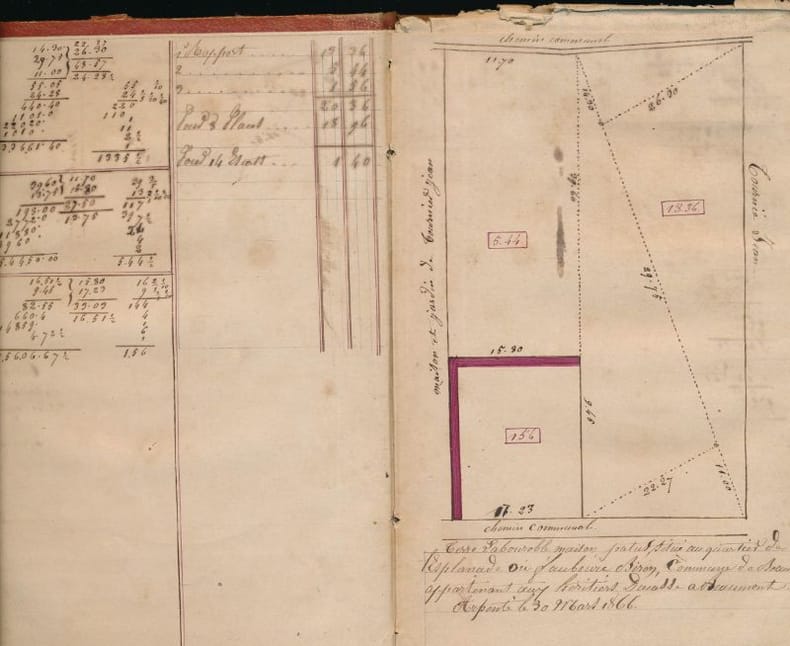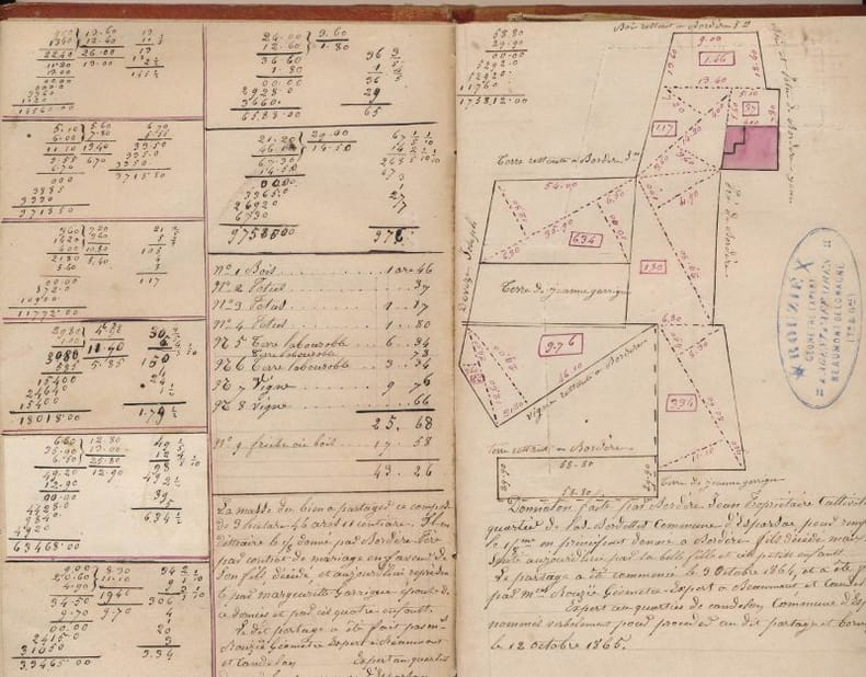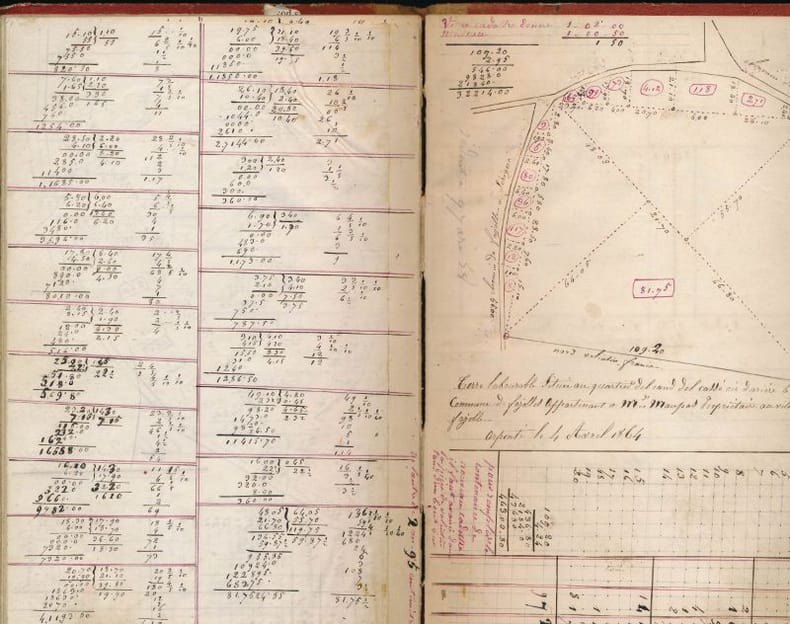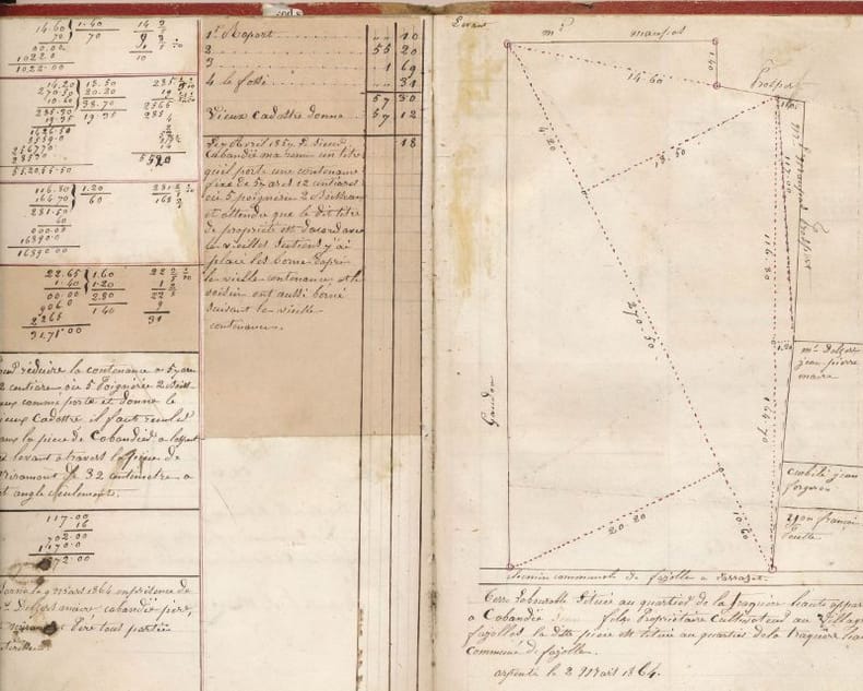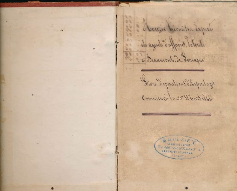 Manuscrit 1866. 3 volumes Manuscrit, 1866. 3 volumes In-12 reliés cartonnages rouge de l'époque. Appartenant à Mr ROUZIER géomètre Expert et agents d'affaires patenté, à Beaumont de Lomagne. Les 3 volumes sont non paginés. Nombreux schémas, annotés.