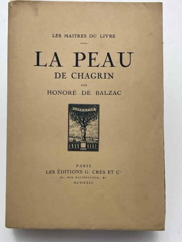 Editions du trianon 1930 323 pages in8. 1930. Broché avec jaquette. 323 pages. Le roman raconte l'histoire de Raphaël de Valentin un jeune homme désespéré par la misère et les échecs qui acquiert un talisman magique une peau de chagrin ayant le pouvoir d'exaucer tous ses désirs. Cette quête de bonheur mène paradoxalement à sa destruction explorant l'interaction entre le désir la volonté et la vie