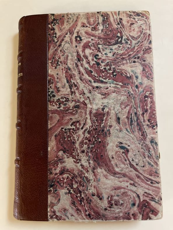 Virulents pamphlets contre les Jésuites et contre la bulle Unigenitus condamnant le jansénisme, le tout en patois parisien très burlesque. Le volume contient les 4 Harangues dont la troisième et la quatrième (1732 et 1736), au sujet des miracles, en édition originale ; les Remontrances de Sarcelles, 1732 en deuxième édition, Philotanus, avec frontispice gravé sur bois, sans page de titre ; les Nouveaux appelans, sans page de titre.Amusant frontispice gravé sur bois signé C. Fétu en tête des harangues. Une figure gravée sur bois pour Philotanus montre la rencontre entre le curé et le diable.La 4e harangue est enrichie d’un papillon imprimé qui couvre partiellement la page 10 et soit donne une seconde version du texte, soit compense un oubli de l’imprimeur.Usures aux angles de la reliure, manques de cuir à deux coins et à un mors, tête élimée.