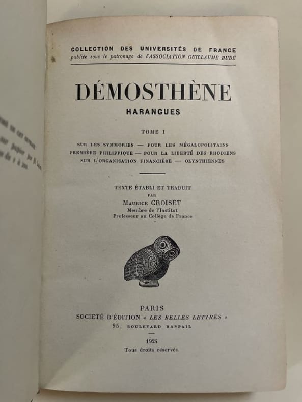 Belles lettres 1924. In Belles lettres 1924. In-8 Relié demi chagrin fauve, dos à nerfs avec titre doré. Collection des Universités de France publiée sous le patronage de Guillaume BUDE. XLVIII + 136 pages. Bon état