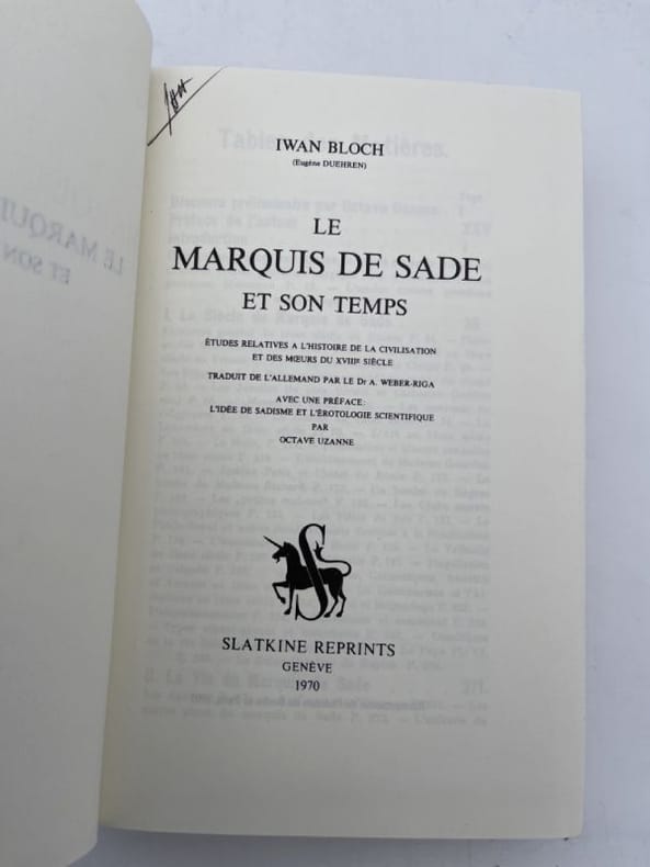 Traduction de : Der Marquis de Sade und seine Zeit.... Avec une préface : L'idée de Sadisme et l'érotologie scientifique par Octave Uzanne....EDITION ORIGINALE de cette rare et importante étude....BEL EXEMPLAIRE.....en bon état (good condition). en bon état