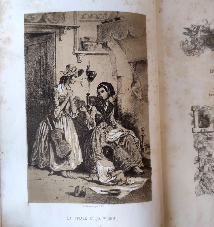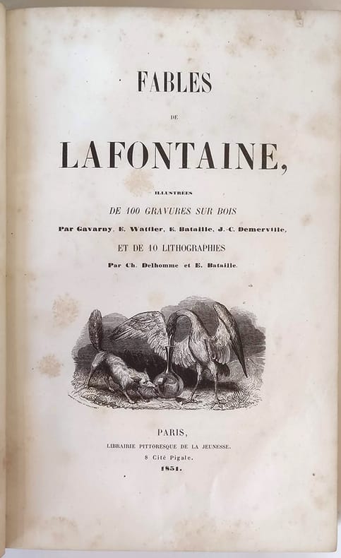 Librairie pittoresque de la jeunesse Paris, 1851, in-8 pleine percaline polychrome éditeur personnalisée, toutes tranches dorées. 374pp. 100 gravures sur bois par Gavarny, E. Wattier, E. Bataille, J.-C. Demerville et de 10 lithographies par Ch. Delhomme et E. Bataille. Cette édition reprend le même cartonnage dessiné par Liebherre que l'édition Lehuby publiée avec d'autres illustrations. (Malavieille, reliures et cartonnages d'éditeur, fig.101). Quelques rousseurs, petit manque de toile sur un coins sinon cartonnage très frais, y compris le dos.