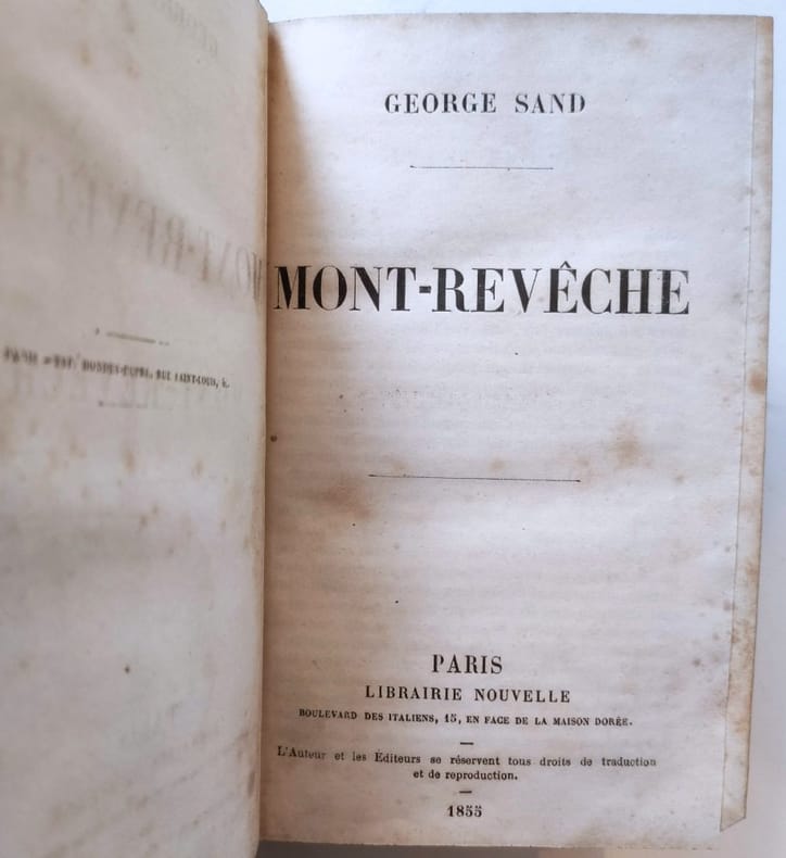 Michel Lévy Frères, 1869, in-12 rel. 1/2 chag. rouge (12 x 18,5),381 p., nouvelle édition des Œuvres complètes de George Sand, bonne reliure d'époque, dos à 5 faux-nerfs joliment orné de fleurons, tranche de tête dorée, rousseurs sur la page de titre seulement, propre par ailleurs, plats un peu frottés aux angles, bon exemplaire, bon état.