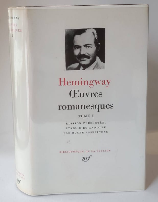 NRF / Gallimard / Bibliothèque de la Pléiade Paris, 1968, in-12 reliure éditeur sous rhodoïd, jaquette et étui de carton gris, LXXXIV-1472pp. Edition présentée, établie et annotée par Roger Asselineau. L'Éducation de Nick Adams - Torrents de printemps - L'Adieu aux armes -poèmes de guerre et d'après-guerre - Le Soleil se lève aussi - Paris est une fête- L'Éducation européenne de Nick Adams - Mort dans l'après-midi - Espagne et taureaux. Parfait état.