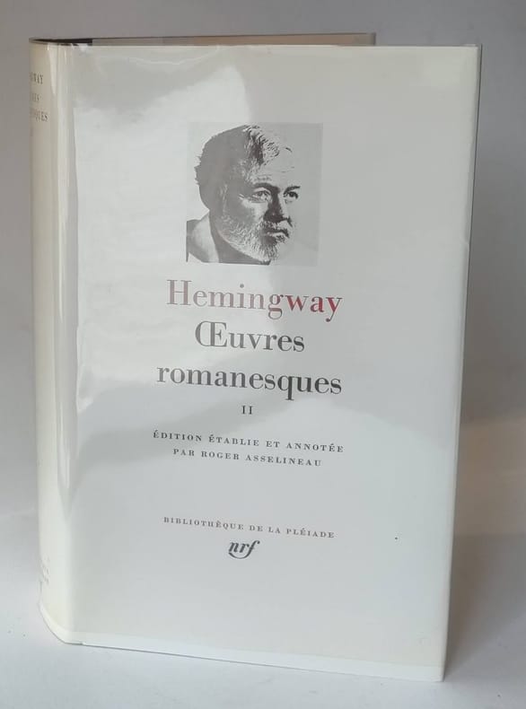 NRF / Gallimard / Bibliothèque de la Pléiade Paris, 1969, in-12 reliure éditeur sous rhodoïd, jaquette et étui de carton gris, XI-1762pp. Edition présentée, établie et annotée par Roger Asselineau. Contient : Les Vertes collines d'Afrique. Chasses en Afrique - Dépression en Amérique - Pêche et tempêtes dans la mer des Caraïbes - En avoir... ou pas - Pour qui sonne le glas - La Cinquième Colonne. La Guerre civile espagnole - La Deuxième Guerre mondiale - Deux poèmes à Mary - Deux histoires de ténèbres - Au-delà du fleuve et sous les arbres - Fables - Le Vieil Homme et la mer - Discours de réception du prix Nobel. Parfait état.