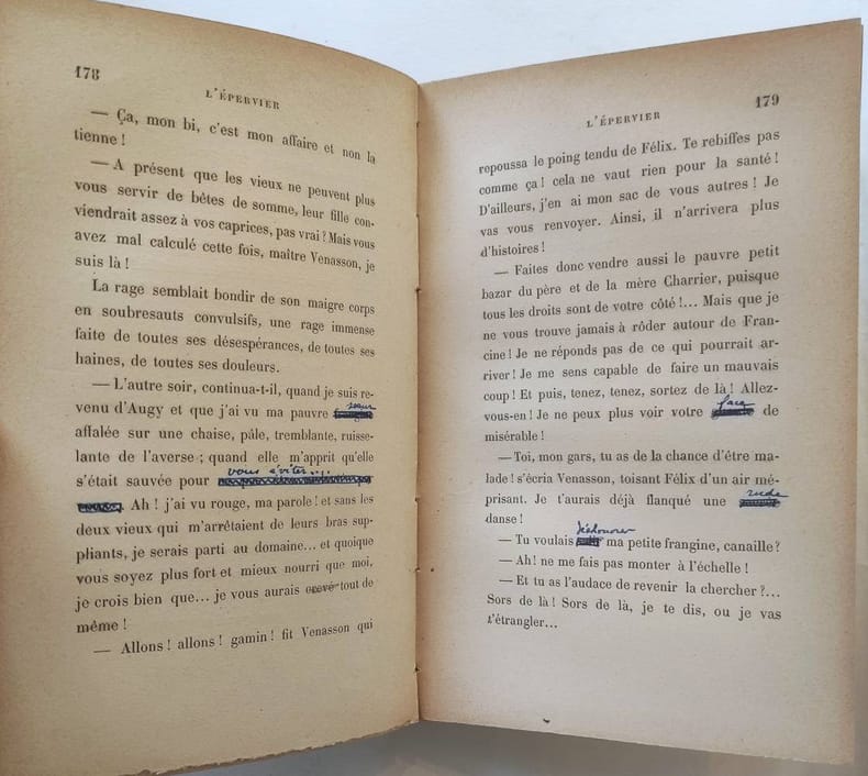 Calmann-Lévy, Editeur Paris, sd (1908), in-12 demi-percaline bleue à la bradel, pièce de titre cuir, plats de couverture conservés. Reliure signée Javouhey. 286pp. Edition originale. Exemplaire de l'auteur présentant de nombreuses corrections et surtout des biffures et suppressions de texte.