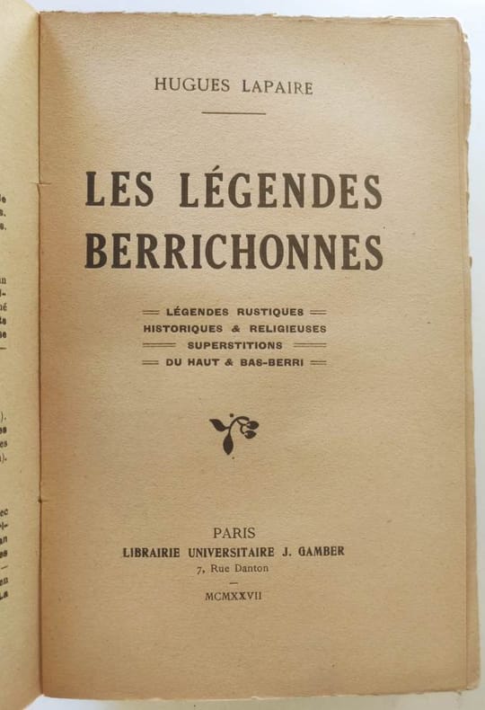 Librairie universitaire J. Gamber Paris, 1927, fort in-12 broché, VII-377pp. Légendes rustiques, historiques et religieuses, superstitions du Bas-Berry. Première édition. Très bon état.