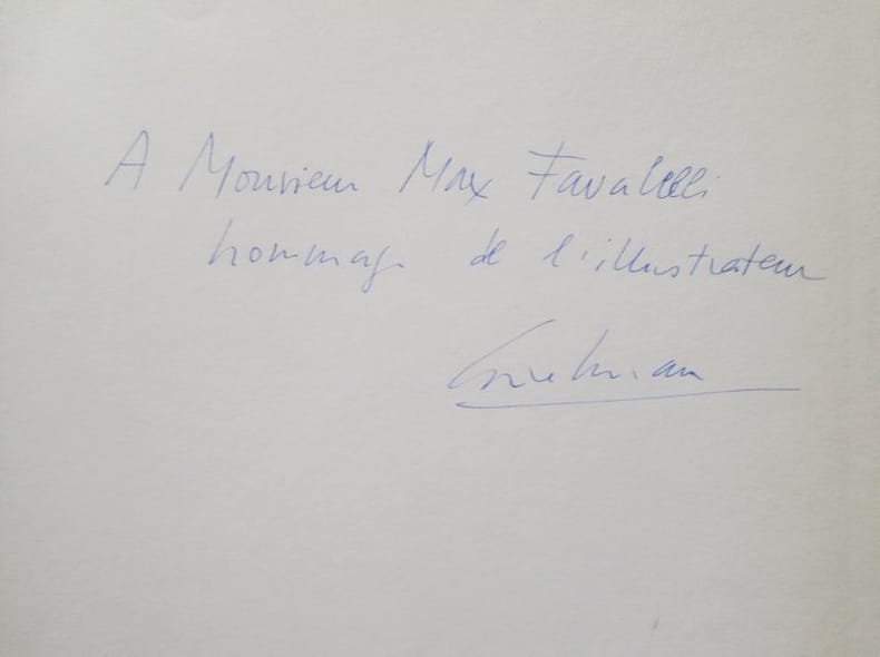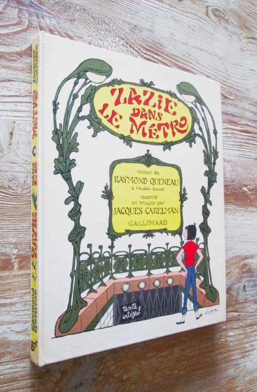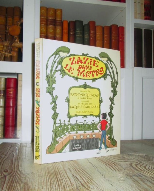 Gallimard, 1966. In-4 (23,3 x 29 cm), album cartonné, 98 pages, illustrations en couleurs de Jacques Carelman.- Edition originale de cette version illustrée de "Zazie dans le métro", présentée comme une bande dessinée. Envoi autographe de l'illustrateur J. Carelman. Très bel exemplaire, bien frais.