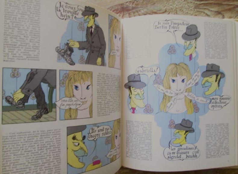 1966 Paris, Gallimard, 1966; in-4° de 98pp. - 1 f. Illustré de dessins en noir et en couleurs. Plein cartonnage blanc de l'éditeur illustré en couleurs sur les plats et le dos, titre en rouge et noir.Belle illustration de Carelman très inventive et réprésentative des années 60 échevelées avec des variations typographiques elles aussi multiples, la couverture alliant art déco et modernité..