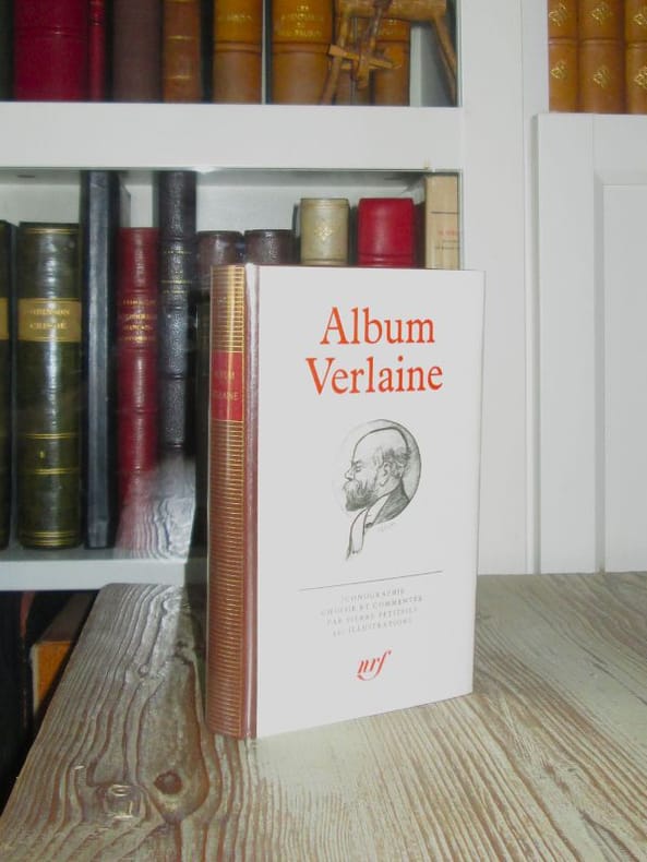Gallimard, Paris, 1981. Album de la Pléiade N°20. In-12 reliure éditeur plein cuir (17 x 10,5 cm), sous jaquette blanche imprimée, rhodoïd et carton gris, 320 pages, 492 ill., Iconographie réunie et commentée par Pierre Petitfils. " Sa biographie forme une symphonie où se heurtent violemment des thèmes contradictoires, avec accompagnement d'éclairs, d'orages et de délires dus à l'absinthe, aux apéritifs et à la bière du Nord qu'il supportait mal. [...] Il reste de lui de bonnes photographies, dès sa jeunesse, et nous avons la chance qu'il eut des amis sachant dessiner : Ernest Delahaye, spontané et malicieux, Germain Nouveau, Henry Cros et surtout Frédéric-Auguste Cazals, qui a laissé de lui près de cent cinquante portraits, croquis au crayon, à la plume, à la sanguine ou au lavis. [...]Ces divers apports permetttent de présenter de l'auteur de Sagesse une iconographie riche, variée, vivante.» Très bon état.