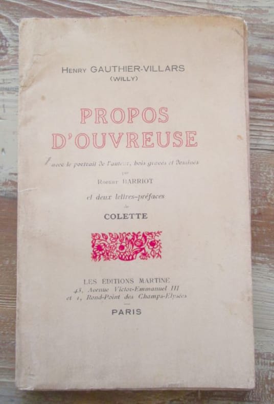Paris : les Éditions Henry-Parville, [1926]. In-8 broché, 149 pages. avec le portrait de l'auteur, bois gravés et dessinés par Robert Barriot. Deux lettres-préfaces de Colette.- Les deux chapitres intitulés : "Claudine à Marseille" et "L'Opinion de Claudine" sont signées : "Colette", le second étant daté : "Juin 1905". Dos un peu passé. Bon état général, intérieur très frais. Cet exemplaire est l'un des 800 ex. sur Vergé (n° 288)