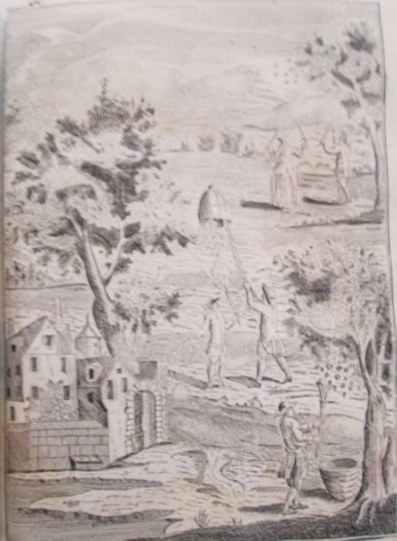 1755 basane brune, dos à n. (usagée, les 2 gravures dépliantes des pressoirs sont incomplètes) in-4, (4ff.), 992pp., (12ff.), 19 gravures hors-texte, nombreux bois, P. Saugrain 1755