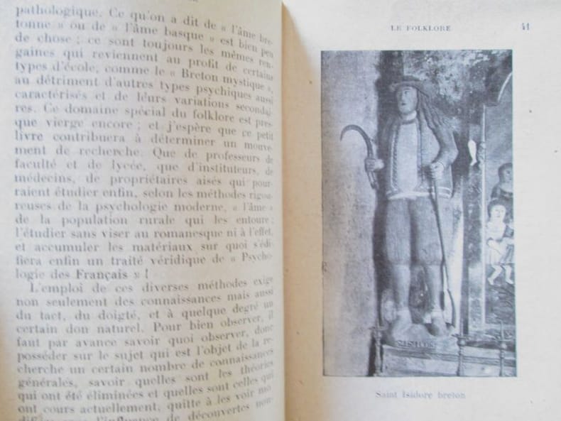 P., Librairie Stock, 1924, in-16 broché, 127 pp, 11 figures dans le texte et hors texte. Historique. Domaine. Méthodes. Les cadres. Les contes et légendes. Les chansons et les danses. Les jeux et les jouets. Les cérémonies et les croyances. Les maisons, les ustensiles et les costumes. Les arts populaires.