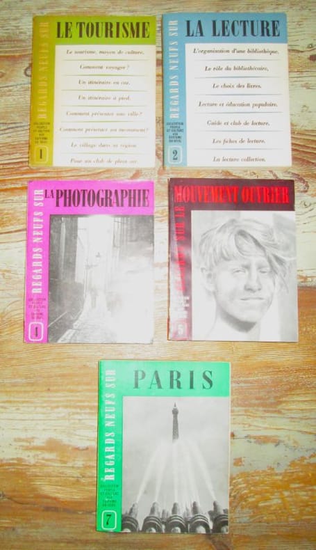 Seuil, 1949. 5 titres de la collection "Peuple et culture" des éditions du Seuil, au format in-12 broché : . Regards neufs sur le tourisme - 2. Regards neufs sur la lecture - 4. Regards neufs sur la photographie - 5. Regards neufs sur le mouvement ouvrier - 7. Regards neufs sur Paris. Chaque livre comprend entre 120 et 220 pages, chacun est dédicacé par l'un des auteurs. Sous coffret toilé. Très bon état.