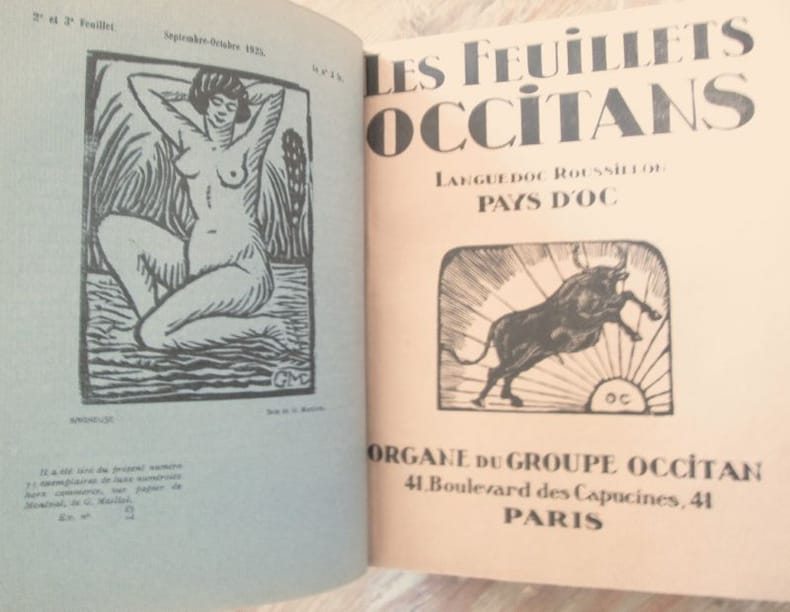 Ouvrage tiré à 20 exemplaires de luxe num., sur papier de Montval, de G. Maillol. Ex. n° 2. Pour l'Occitanie. Essai de Programme pour une Organisation du Midi, Joseph Delteil. Vus hérétiques sur l'Occitanie, Benjamin Crémieux. Le Carnaval en Roussillon, Charles Roussillon. Bois originaux d'Auguste Rouquet. Bois d'Aug. Rouquet gravé par Achille Rouquet... Classification Dewey : 849-Littératures provençale et catalane